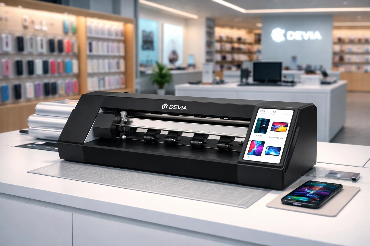 Devia México ha desarrollado un sistema pensado para que cualquier comercio pueda integrar estos servicios sin complicaciones. Con máquinas de corte de protectores y equipos para imprimir en carcasas, cualquier negocio puede ofrecer en minutos un producto único, adaptado al modelo y marca del celular del cliente.